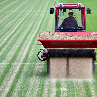 Distribuzione di sabbia per migliorare la struttura del suolo, ottimizzare il drenaggio e favorire la crescita uniforme del manto erboso.